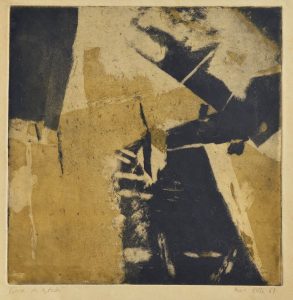 Em 1965, a minha própria concepção sobre a arte abstrata começa a se radicalizar, assumindo recortes e relevos na sua composição. É o caso de duas gravuras sem título, que diferem das outras anteriores porque recorto uma forma trapezóide na própria placa de latão, e assim, o relevo surge impresso no papel branco, vazio.