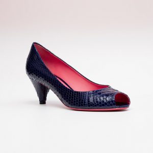 ALBA: Passos marcantes em um peep toe único. O acabamento em python safira do Alba é a certeza de um look sofisticado e elegante. Preço: a partir de R$ 2.160.