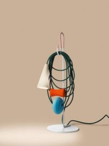 Bicoca, de Christophe Mathieu – desenhada para a icônica Marset, a peça é formada por uma delicada sobreposição de figuras geométricas básicas coloridas que projetam uma luz intimista, totalmente direcionável. Compacta – com medida de 14 x 22,5 cm –, a luminária conta com uma bateria de baixo consumo – carregrada via USB – e tecnologia LED que a tornam totalmente nômade e portátil. Feita em policarbonato;