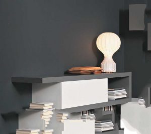 Gatto, de Achille e Pier Giacomo Castiglioni – com design para a Flos, apresenta uma fina estrutura em aço revestida em resina “casulo” em acabamento transparente pulverizado – técnica exclusiva da marca –, o que cria uma luz difusa suave e cativante. Medindo 38,5 x 58 cm, conta com dimmer eletrônico que permite a regulação do brilho da luz;