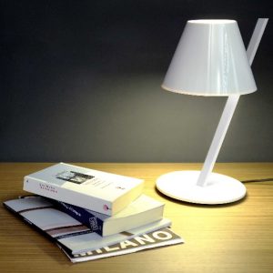 La Petite, de Andrea Quaglio e Manuela Simonelli – Assinada para a Artemide, a luminária se destaca pelo design contemporâneo. De sua ampla base, uma barra de alumínio se estende obliquamente, de modo que a luz parece flutuar suavemente. As formas geométricas claras conferem um aspecto de pequena obra-prima de iluminação arquitetônica. Feita em policarbonato, alumínio e metacrilato, mede 19,2 x 37 cm.