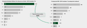 Relatórios da Ellen MacArthur Foundation revelam que o uso de materiais reciclados é um dos principais alicerces para atingir as metas de circularidade estabelecidas até 2030, de acordo com os parâmetros Objetivos de Desenvolvimento Sustentável estabelecidos pela Organização das Nações Unidas (ONU). Para atingir tais patamares, educação e letramento ambiental da população são essenciais, com a disseminação didática de informações para que haja tratamento adequado. No Brasil apenas 11,7% do plástico consumido é de origem reciclável, o qual tem produção concentrada no Sudeste. A produção de PCR representou apenas 11,7% do total de plástico consumido