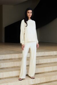 Já na linha casual, perfeita para complementar tanto os looks esportivos quanto os do cotidiano, são utilizados tecidos de algodão, tricôs e moletinhos, proporcionando leveza e estilo durante os momentos de pausa e relaxamento. Um dos tecidos de destaque é o Seamless, que não possui costuras e proporciona um ajuste perfeito ao corpo, além de trazer um viés sustentável, reduzindo desperdícios no processo de produção.
