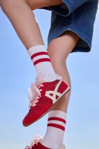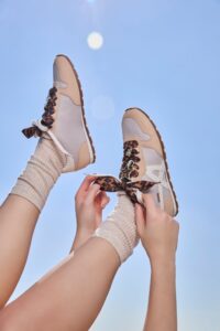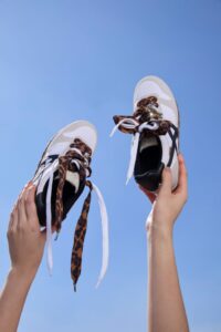 Dentro desse movimento, a Anacapri apresenta o tênis Lola, modelo que combina o design slim à possibilidade de customização nos cadarços, por meio de fitas diferenciadas e “shoe charms”. A proposta é que cada par traduza a individualidade de quem usa, seja com fitas delicadas e transparentes ou versões estampadas em animal print, xadrez e paisley, além de enfeites em formato de estrelas, corações, frutinhas e outros ícones.