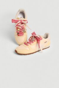 O tênis também aposta em conforto e estilo casual: feito em nylon, sintético, nobuck e detalhes em camurça, ele transita do trabalho ao lazer com leveza. A cartela de cores traz tons como cinza e bege em contraste com rosê e pontos de cor, reforçando sua versatilidade no guarda-roupa.