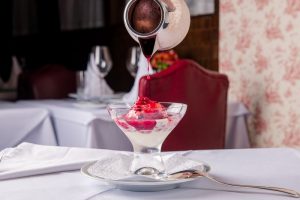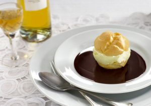 Para eventos – sejam sociais ou corporativos – os pedidos disparados são pelos Profiteroles au Chocolat (carolina recheada com sorvete da casa e calda de chocolate). Por sinal, quem já provou o sorvete da casa sabe a leveza e cremosidade que ele tem. Pode receber a calda de chocolate quente preparada com chocolate belga (Coupe Armenonville) ou a calda de framboesas e Rum (Coupe Rouen).