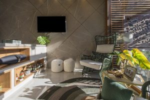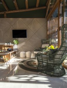 Com a tecnologia elaborando peças decoradas com cada vez mais realismo na interpretação de mármores, o impacto visual dos painéis de porcelanato impressiona até os olhares mais técnicos. “Podemos ver nos últimos anos nos principais eventos de arquitetura e decoração do mundo uma forte tendência de uso de revestimentos em paredes, tanto externas como internas, em qualquer ambiente. A facilidade de aplicação, limpeza, manutenção, proteção contra a umidade e conforto térmico somam características que fazem desse um excelente investimento pelo viés estético e também pela funcionalidade”, aponta a designer de produtos da Cerâmica Elizabeth, Priscila Braga.