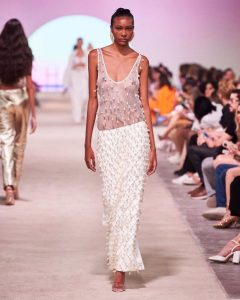 “Nosso desfile buscou transmitir calma e elegância, celebrando a energia solar e o estilo de vida sofisticado. Soir é uma ode à magia do entardecer, personificando a transição entre o dia e a noite. Cada peça da coleção é um testemunho dessa conexão íntima com o universo, uma expressão poética da beleza que banha o horizonte ao cair da tarde.”, compartilha Nastácia Schacht, fundadora e diretora criativa da marca.