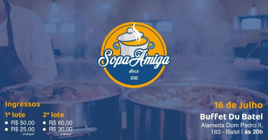 Os convites para a Sopa Amiga podem ser comprados antecipadamente por R$60 (adultos) e R$30 (crianças). Para mais informações entre em contato pelos telefones: (41) 3366-5212 e (41) 998677069 ou pelo link do sympla www.sympla.com.br/17-sopa-amiga-afece__1638219