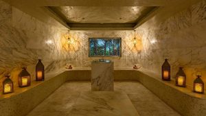 O spa possui 7.000 metros quadrados e 16 salas de tratamento, incluindo suítes VIP com chuveiros externos e terraços. Dispõe ainda de piscina de águas medicinais com hidroterapia e banhos revigorantes em água salgada mineralizada, rica em nutrientes. Um dos procedimentos do local é o tratamento antienvelhecimento em ouro de 24 quilates combinado com uso de plantas, usado para regenerar as células da pele, proporcionando um resultado eficiente e duradouro. O spa também possui serviço de massagem com pedras da praia que aliviam o estresse e a tensão, e também tratamentos utilizando as propriedades do maracujá, do óleo de semente de cânhamo e açaí, tornando sua pele radiante da cabeça aos pés.