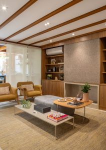 Mantendo sua assinatura de uma paleta de cores neutras, com piso de porcelanato cinza nas áreas comuns, piso de madeira nos quartos, paredes em off white para suavizar o branco, e marcenarias em tons de madeira para criar um ambiente acolhedor, a STAL Arquitetura inseriu toques de cor através do mobiliário, onde a madeira desempenha um papel de destaque. O resultado é um projeto moderno que respeita o estilo dos clientes, criando um ambiente jovem, descontraído e alegre.