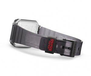 O mostrador do relógio, com botões frontais coloridos em estilo pop, exalta a década extravagante. Em silhueta, tal como aparece na pequena cidade dos EUA, Demogorgon, a criatura do submundo, é destaque em vermelho no mostrador. Os tentáculos do vilão também estão estampados no verso do relógio e na pulseira ajustável de resina transparente que relembra que este mundo e o submundo estão intimamente ligados. Para completar, a logo da série é destaque na luz LED revelando o título invertido, numa evocação adicional da dimensão alternativa. Confira aqui o vídeo de lançamento.