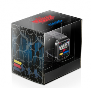 A série de aventuras misteriosas que se passa nos anos 80 é a companheira perfeita para os emblemáticos e populares modelos Casio, lançados nessa época. A referência integra os designs multicoloridos da Casio, em uma homenagem a misteriosa dimensão alternativa que existe em paralelo com o universo humano na série.