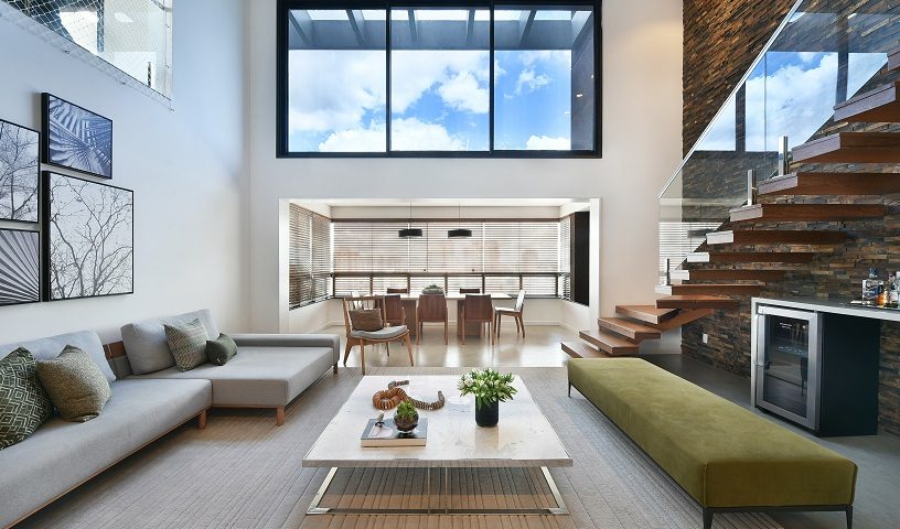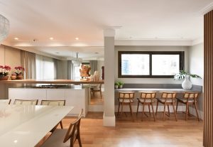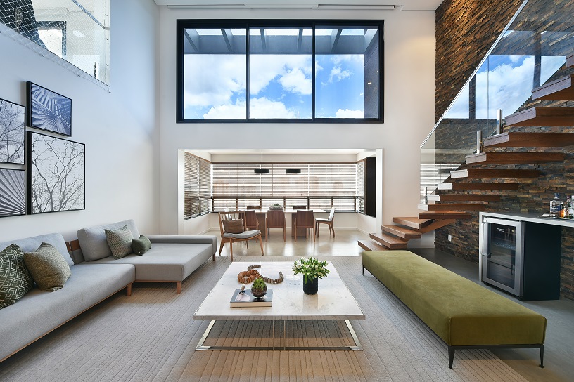 Para livings que não possuem varandas, Carol Multini e Marina Salomão indicam janelas amplas e que abram totalmente, como as de correr. Assim, garante-se um lar bem iluminado e arejado e ainda amplia o vão existente. “Gostamos sempre de trabalhar janelas de vidro e com vãos grandes, priorizando a luz natural”, explicam. O mesmo vale para quartos. “Para garantir privacidade e conforto, é importante pensar também em cortinas e persianas”, lembram as arquitetas do Studio Mac.