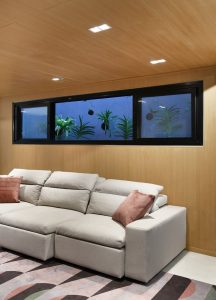 Agora, quando falamos de janelas para banheiros e cozinhas, Carol Multini e Marina Salomão indicam o modelo maxim-ar. “Elas são melhores do que as basculante, pois possuem abertura para fora. Isso é perfeito para dias chuvosos, pois permite que se mantenha a janela aberta sem que a água da chuva entre”, diz Marina. Janelas basculantes também são boas opções, garantindo bastante luminosidade. “Não tenha medo de explorar janelas grandes. Elas são ótimas nesses ambientes”, indica Carol. Para corredores voltados para áreas externas, por sua vez, a dupla indica janelas de correr ou de vidro fixo. “Nesse caso, o modelo deve priorizar a contemplação do espaço externo”, explica.