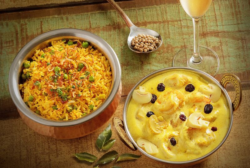 Os pratos principais da primeira opção são Butter Chicken (cubos de frango marinados no iogurte com especiarias e cozidos em molho de tomates frescos e manteiga, decorados com creme), Meat Korma (cubos de filé mignon cozidos com creme de curry e decorados com amêndoas) e Tarka Daal (Lentilhas cozidas em molho cremoso, preparadas com alho, gengibre, coentro e especiarias). Os principais ainda são acompanhados por Kashmiri Pulao (arroz cozido com especiarias e frutas secas) e Garlic Naan (Pão tradicional indiano preparado com alho e assado na hora no forno ‘tandoor’). Já a sobremesa Gulab Jamum and Kulfi (bolinhas feitas com leite em pó, mergulhadas em calda doce, decoradas com amêndoas e castanhas de caju, servidas com sorvete tradicional indiano).