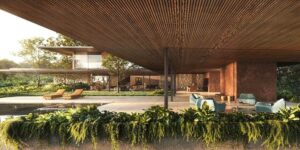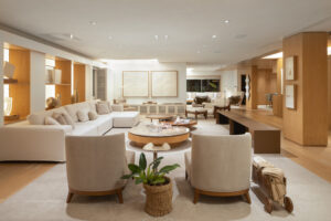 Travertino Romano, da Gramarcal, se destaca no ambiente assinado por Juliana Meda na Mostra Artefacto 2025
