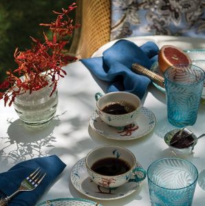 As peças trazem à tona não só a beleza, mas a riqueza de técnica das mais finas porcelanas do Oriente e suas cores. Com pinceladas perfumadas de história, Tania Bulhões desenhou as louças Rouge de Fer apresentando a riqueza de detalhes para a mesa na estação mais quente do ano.