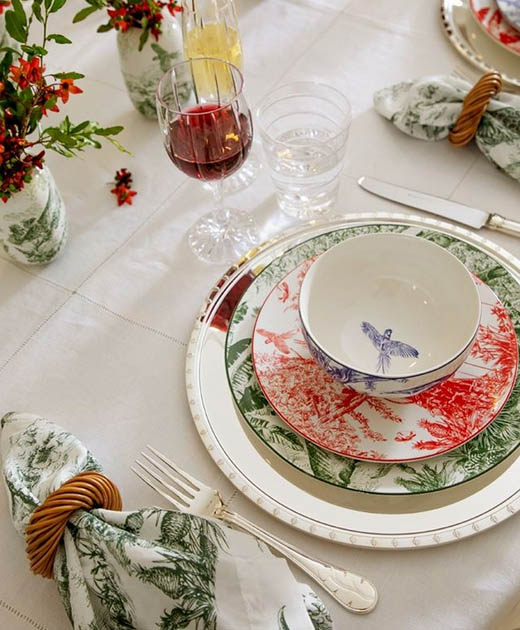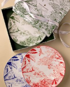 Em um manifesto pela exuberância da natureza, a novidade parte do desenho “Toile de Jouy Brasil” que traz a inspiração do desenho tipicamente francês para uma versão 100% fresh e tropical. De seu ateliê, Tania criou uma cena tipicamente brasileira entre céu, terra e mar com folhas, o Pão de Açúcar e pássaros silvestres para vestir uma preciosa coleção. Os traços coloridos protagonizam uma linha completa de tableware, produtos de perfumaria com aroma inédito e ainda uma edição especial de criações de moda para vestir nas férias: uma sandália, um tênis e um lindo panneaux.