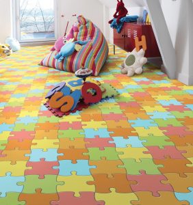 Líder mundial em pisos vinílicos, a Tarkett oferece pisos vinílicos especialmente desenvolvidos para ambientes infantis na coleção Magic, inserida no portfólio de mantas residenciais da linha Imagine. Comercializadas em rolos de 2×25 metros, a coleção possui seis estampas com desenhos que estimulam a criatividade dos pequenos, com pisos que reproduzem a planta de uma cidade ou a de uma casa, passando por pistas de corrida, corações e quebra-cabeças.