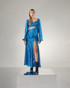 Para os vestidos, a label aposta no jacquard, que traz fluidez e, nesta temporada, são encontrados em um desenho geométrico orgânico com detalhes em corda de seda. Os tons elétricos em verde e azul são destaque nestas peças, trazendo cor à estação fria do ano.
