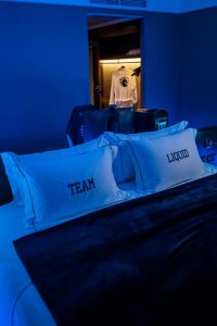 Em uma colaboração exclusiva das marcas, um quarto do Tivoli Mofarrej traz elementos totalmente voltados para jogos, com detalhes que irão levar os hóspedes ao universo da Team Liquid. O apartamento traz decoração temática, com produtos de parceria Liquid, que inclui roupa de cama, almofadas, roupão personalizados, cadeira gamer ergonômica, um PC, além de iluminação LED interativa, instalada pela R1 Audiovisual. Tudo isso aliado a internet de alta velocidade e uma das vistas mais incríveis da capital paulistana.