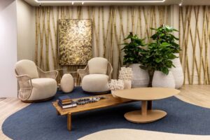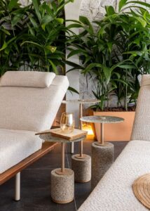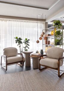 Para Rogério Lemos, diretor da ContTi Home Design, a vitrine é mais do que uma vitrine: “Não é só sobre mobiliário; é sobre criar espaços que fazem parte da vida real das pessoas. Lugares onde você quer estar e ficar.” Esse caráter afetivo se reflete na escolha da paleta de cores, que combina terrosos, areias quentes e verdes intensos. Nos tecidos claros, na textura das pedras e no toque natural do bambu, tudo colabora para que o visitante sinta o espaço como seu — um refúgio aberto, pronto para receber e ser vivido.