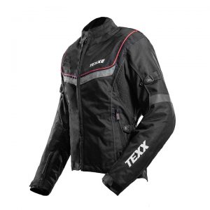 A jaqueta TEXX Sniper é um modelo esportivo, produzida em couro bovino de 1,1 mm, oferecendo muita segurança ao motociclista. A novidade conta com protetores EVOLUTION CE nos ombros e cotovelos, além de apresentar o cupim com design inovador, contribuindo também para a sua aerodinâmica. Seu design esportivo, com detalhes em vermelho e branco, utiliza modelagem e detalhamento diferenciado, acompanhando as tendências europeias.