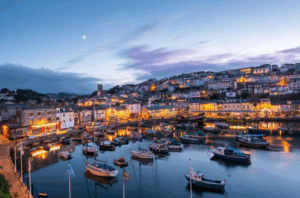 Vista ao entardecer do charmoso porto e vilarejo de Brixham, na pitoresca região da ‘riviera inglesa’. Foto: Devon Scenic Photography/Alamy Stock Photo