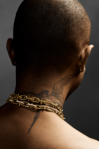 Símbolo de uma individualidade destemida, o motivo é justaposto por um elo de formato único, curvo e suave contra a nitidez da lança. Retratando um diálogo entre tensões, proporção e equilíbrio, a coleção apela a indivíduos com uma mentalidade única e uma força poderosa que confronta o comum.
