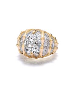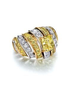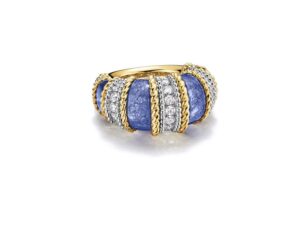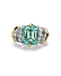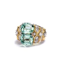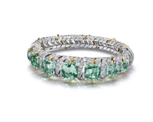 Uma celebração da forma e da textura, o capítulo Shell explora a arquitetura natural do mar. Com curvas ondulantes de platina e ouro e cristas cravejadas com diamantes brancos e amarelos, essas criações convidam a uma experiência tátil. Um notável broche Shell apresenta uma turmalina verde de 8,62 quilates que captura a ousada assimetria de uma concha.