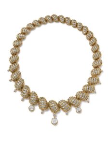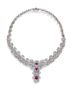 Inspirado nos broches fantasiosos de anêmona-do-mar de Jean Schlumberger, o capítulo Anemone pulsa com movimento e imaginação. O destaque é um colar marcante, animado com acentos esculturais em ouro e diamantes, e trazido à vida com três rubis não tratados totalizando quase 5 quilates — provenientes das renomadas minas de Moçambique, África. Valorizados por sua cor e qualidade notáveis, os rubis parecem dançar dentro do design.