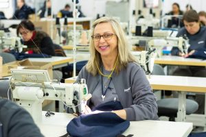 As tipoias da Mercur são feitas por um time de costureiras que atua em uma das sedes da empresa, localizada em Santa Cruz do Sul (RS). A costureira Roselei Meurer da Silva (foto) conta que foi um longo processo, de mais de um ano, trabalhando para fazer a tipoia ideal. “No primeiro momento olhamos o protótipo com a equipe que estava criando e aos poucos fomos trabalhando nas adaptações. Participei com as minhas dicas de costureira e algumas foram bem vindas, isso é o melhor de trabalhar criando junto, cada um contribui com os seus conhecimentos. Até fazer dar certo foram muitas tentativas, com erros seguidos de aprendizados, mas pude me concentrar e fazer com liberdade de criação para depois também ensinar para as colegas que agora trabalham comigo na produção da Tipoia”, conta.