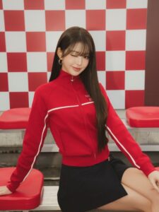 Jang Won Young, embaixadora global da Tommy Jeans, usou uma jaqueta esportiva e uma minissaia envelope em A-line da coleção Tommy Girl Outono 2025, combinadas com botas robustas da coleção Tommy Jeans Outono 2025.