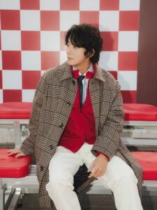 Jung Yong Hwa vestiu um casaco de tweed, suéter trançado, camisa de popeline e jeans de corte relaxado, finalizando o look com mocassins clássicos, todos da coleção Tommy Hilfiger Outono 2025.