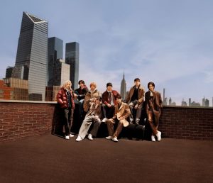 Com uma coleção que traz clássicos visuais de outono nova-iorquinos, a boyband de K-pop exibe seu estilo característico nos telhados da Big Apple