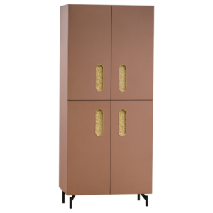 A coleção O Espírito do Lugar, inspirada nas Serras Gaúchas, traz mobiliários com tonalidades em perfeita harmonia com a chegada do outono e a cor do ano, Mocha Mousse, apontada pela Pantone. Assinado pelos designers Nicole Tomazi e Sérgio Cabral, o gabinete possui puxadores com palha de trigo, matéria-prima fundamental na região, utilizada pelos imigrantes italianos para a confecção de acessórios para a lavoura. A trama da palha chamada de Dressa foi passada de geração em geração, principalmente por mulheres, no interior da Serra Gaúcha.