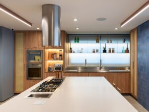 O apartamento é totalmente automatizado, proporcionando comodidade e conforto aos moradores por meio de um sistema inteligente que ajusta automaticamente a iluminação, cortinas, ar-condicionado, som e vídeo. Sensores e programação personalizada permitem que o ambiente se adapte às necessidades do dia a dia sem necessidade de intervenção manual. Além disso, o gosto dos proprietários pela arte pós-moderna foi valorizado com espaços dedicados à curadoria pessoal de peças urbanas e contemporâneas.