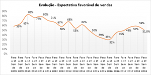 Na edição anterior da pesquisa, referente ao 1º semestre de 2018, 59% dos entrevistados projetavam aumento no faturamento, enquanto no 2º semestre de 2017 esse percentual era de 58%.