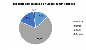 A pesquisa da Fecomércio PR aponta ainda 68,6% dos empresários pretendem manter o quadro funcional. Na edição anterior, esse percentual correspondia a 67,7% dos entrevistados. No entanto, a parcela de empresas que deve reduzir o número de funcionários subiu, passando de 10,9% para 16,6% neste semestre. As empresas que planejam aumentar o quadro de colaboradores são 12,7%. Na pesquisa anterior eram 15,2%.