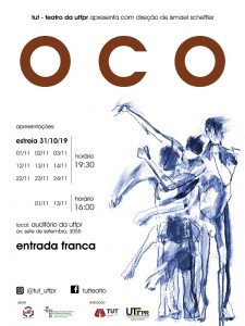 O espetáculo OCO estreia nesta quinta-feira, dia 31/10, às 19h30, no Auditório da UTFPR, no centro de Curitiba. A entrada é franca e com classificação livre.