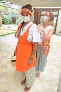 Aventais, pantalonas, camisas e turbantes coloridos compõem os novos uniformes de um dos resorts mais sofisticados do Sul da Bahia, agora assinados pela estilista paulistana Cecilia Echenique.