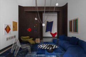 O Gabinete, projeto da Em Cena Arquitetura, apresenta um escritório construído como uma espécie de “santuário” para um grande executivo com foco na alta performance e no bem-estar. Conciliando a rotina de trabalho e atividades físicas, o espaço carregado de bom design e obras de arte, ainda conta com equipamentos de última geração, da Life Fitness, como a esteira como peça central, simbolizando o movimento constante. A ideia foi criar uma espécie de oásis, onde trabalho e cuidado coexistem.