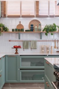 O desenho da marcenaria com molduras, assinada pela Florense, também proporcionou esse clima mais bucólico de casa de fazenda. Os eletros foram embutidos, assim como as duas geladeiras e a máquina de lavar louça, para que os armários tivessem uma unidade, com sensação de continuidade, e tudo ficasse por detrás da marcenaria. “A pedido da proprietária, uma grande bancada foi colocada no centro do cômodo, tanto para organizar quanto para reunir a família na hora do preparo das refeições. Para completar, uma cuba foi projetada em dimensão grande, modelo farmsink, e ficou ótima para o dia a dia da cozinha”, cita Beatriz.