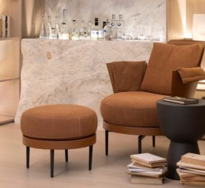 Inspiradas pela música, Deborah Nicolau e Ana Carolina Wojciechowski compõem um ambiente que soa como melodia. O espaço assinado pela dupla para a Mostra é mais do que visual: é sinestésico. Evoca ritmo e pausa, volume e silêncio, em formas orgânicas que fluem como notas suaves, onde cada escolha é guiada por esse princípio. A caixa bar Pietra, elemento-chave da composição, não é apenas mobiliário: é presença escultórica, ponto de força e refinamento. A luz, distribuída em focos estratégicos, cria cenas intimistas e acolhedoras, valorizando volumes, texturas e a paleta sensorialmente orquestrada. “Mais do que projetar, buscamos emocionar”, dizem. E o fazem com autenticidade: seus ambientes são extensões do humano – verdadeiros em forma e intenção, pensados para tocar quem chega, como uma partitura feita de afeto.