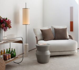 O ambiente assinado por Lisiê Pissetti para a Mostra nasce do espaço, da memória e da música. Inspirado nas antigas tertúlias que aconteciam em salões privados e casas de família, onde arte e afeto se misturavam com naturalidade, o projeto é uma homenagem à cena artístico-musical do Paraná e ao gesto atemporal de reunir. No centro, o módulo Zazah, peça-chave da Artefacto Beach & Country estabelece o tom: convida à conversa, à permanência, à contemplação. Ao fundo, uma escultura de violoncelo em grande escala não apenas pontua a presença da música, mas a reafirma como alma do espaço. A homenagem se estende à família Brandão, notável por seu protagonismo na música erudita local. “Um projeto com identidade, presença e intenção”, define Lisiê.