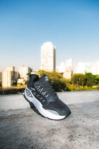 Acompanhando o vestuário, a Umbro traz três sneakers já famosos fora do Brasil: o Bumpy, o Run M e o Neptune.
