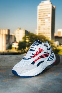 Os três sneakers possuem a essência na estética e no conforto dos anos 90, com solas confeccionadas em EVA robusto proporcionando a maciez que é marca registrada dessa tendência noventista. O Bumpy é o sneaker que representa a explosão da linha lifestyle da Umbro. Inspirado nos “daddy shoes” e criado na Coréia, é o mais popular dos três com sua sola tratorada, painéis refletivos e design robusto. O Bumpy desembarca no Brasil em duas versões: toda preta e toda branca. Já o Run M é uma releitura do Runner M, de 1997, que era usado pelos jogadores profissionais da época fora de campo. Sua nova versão chega em branco com off white e um visual bem clean noventista. O Neptune é uma releitura de um tênis de treino dos anos 90 em versão bold. Suas principais características são as fitas laterais que dão um ajuste perfeito aos pés e dois painéis refletivos na parte da frente do cabedal. O Neptune chega em duas cores: preto com branco e branco com navy e detalhes em vermelho.