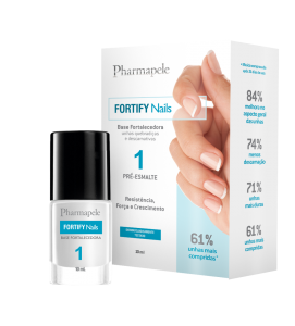 – A Base Fortify Nails, da Pharmapele, é um tratamento para fortalecer, proteger e prevenir unhas descamativas, frágeis e quebradiças. O produto possui rápida secagem e alta durabilidade e sua fórmula traz um nanocomplexo de queratina hidrolisada, arginina e óleo de melaleuca, que promovem resistência e elasticidade, formando uma película flexível sobre as unhas. Outro destaque é a presença de Algisium, um ingrediente rico em silício e que favorece a síntese natural da queratina, deixando as unhas mais fortes e resistentes. A vitamina E e o Pantenol formam uma barreira natural que garante o brilho, proteção e aspecto saudável. O produto tem aplicação pré-esmalte e, em caso de unhas muito fracas, pode ser usado por 15 dias na unha limpa e sem esmalte.