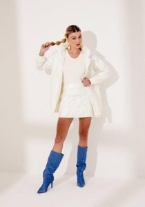 Dentro desta vibe futurística, os conjuntos em matelassê com aplicações de brilho destacam a jaqueta pufer com minissaia. Itens-chave para a temporada de inverno carregam o conforto como a jaqueta bomber e o Casaco Teddy, que ganham nova roupagem em tecidos mais felpudos e quentes, ideais para o alto inverno. Assim como a calça cargo e muscle tees. Para toda a coleção, a escolha da paleta de cores reforça a estética invernal no preto, branco, off, camelo, verde, fúcsia e o Sweet Dream.